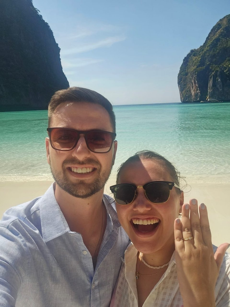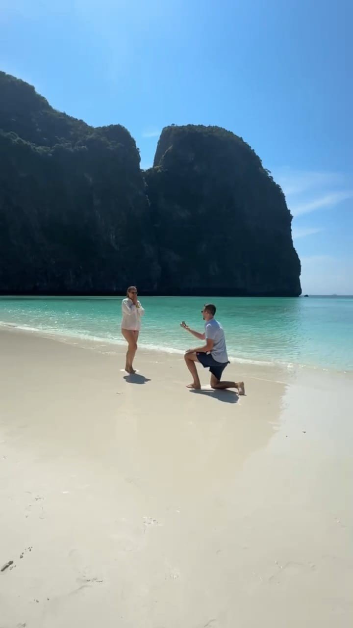 E, como sempre, o noivo realizou: fez o pedido no lugar dos sonhos da noiva — Maya Bay, na Tailândia — no dia 14 de março de 2025.